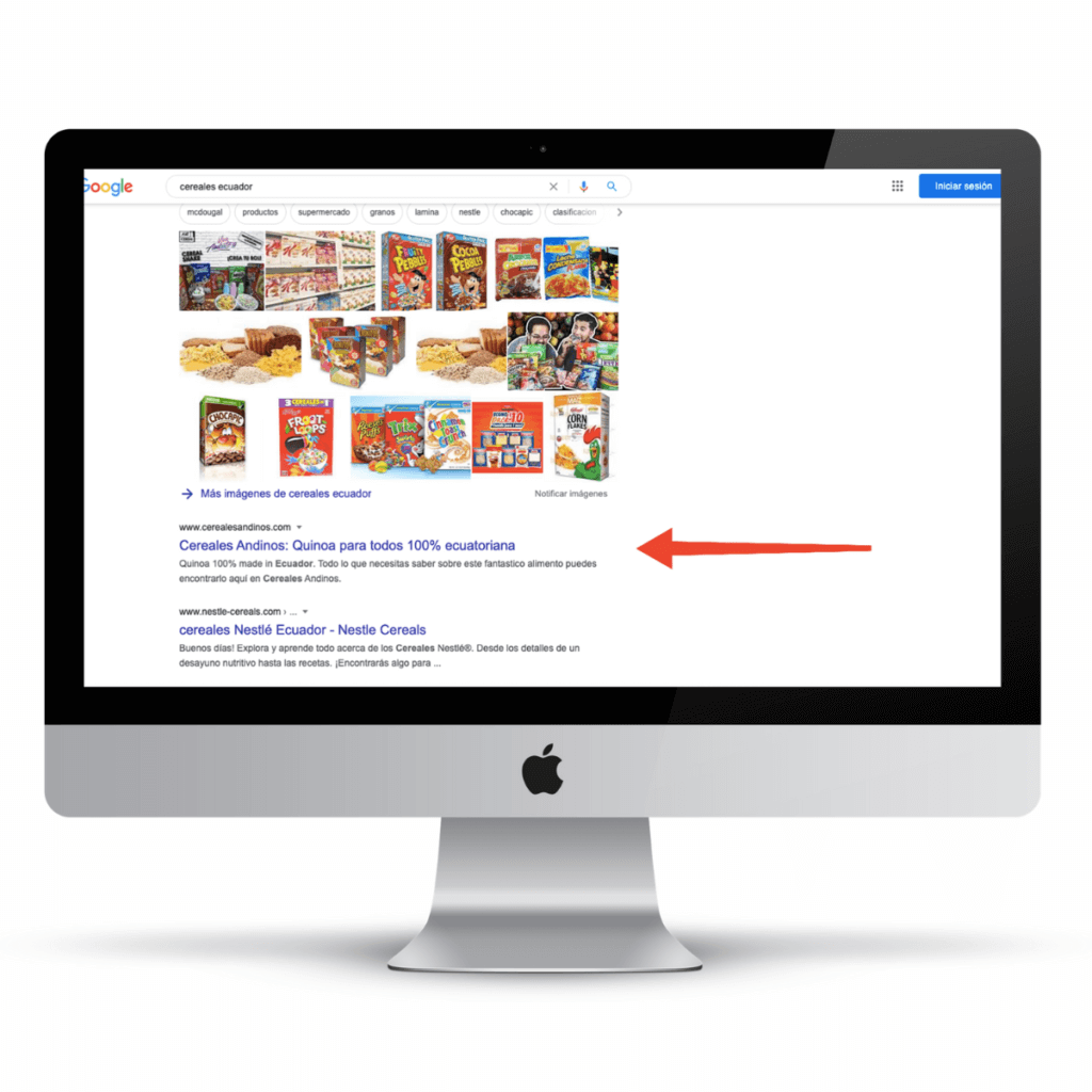 Fábrica de quinoa y cereales en Ecuador. Con la keyword «cereales ecuador» logramos posicionarlos en primera posición por encima de Nestlé Ecuador.