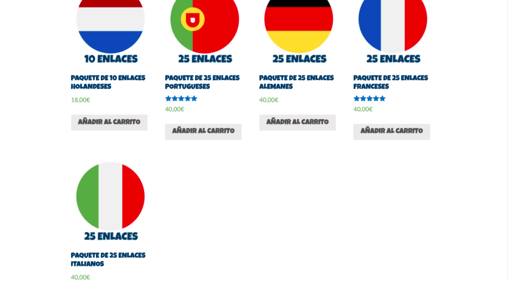 También puedes comprar enlaces en un idioma específico, como por ejemplo: