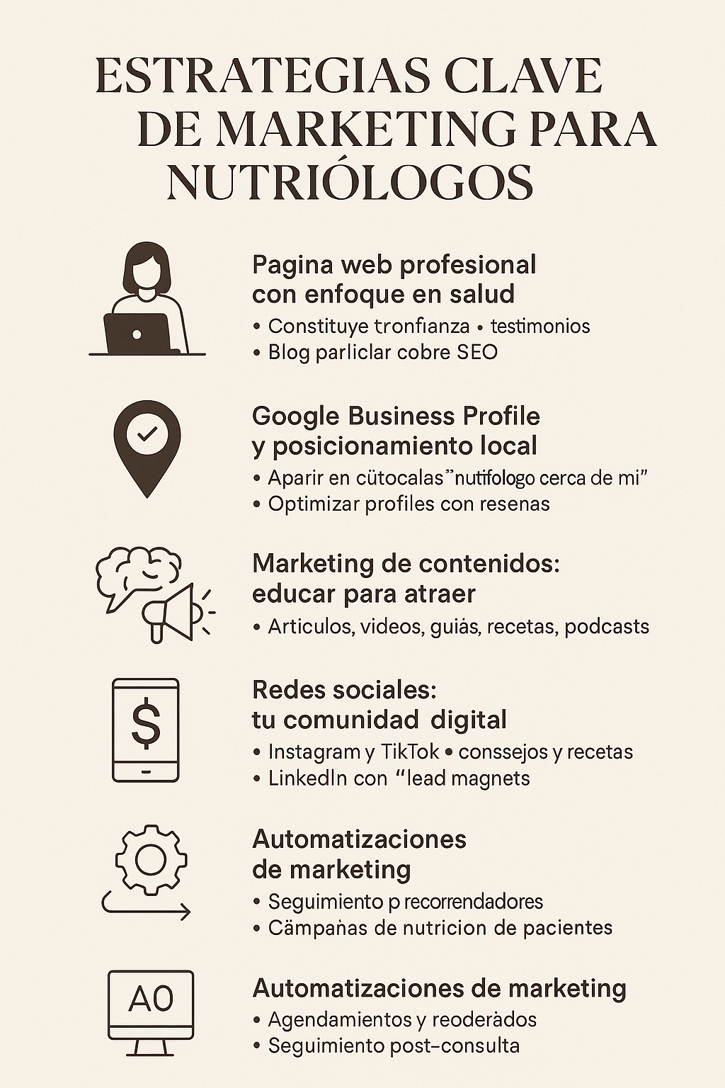 7. ¿Qué herramientas digitales puede usar un nutriólogo para automatizar su marketing?