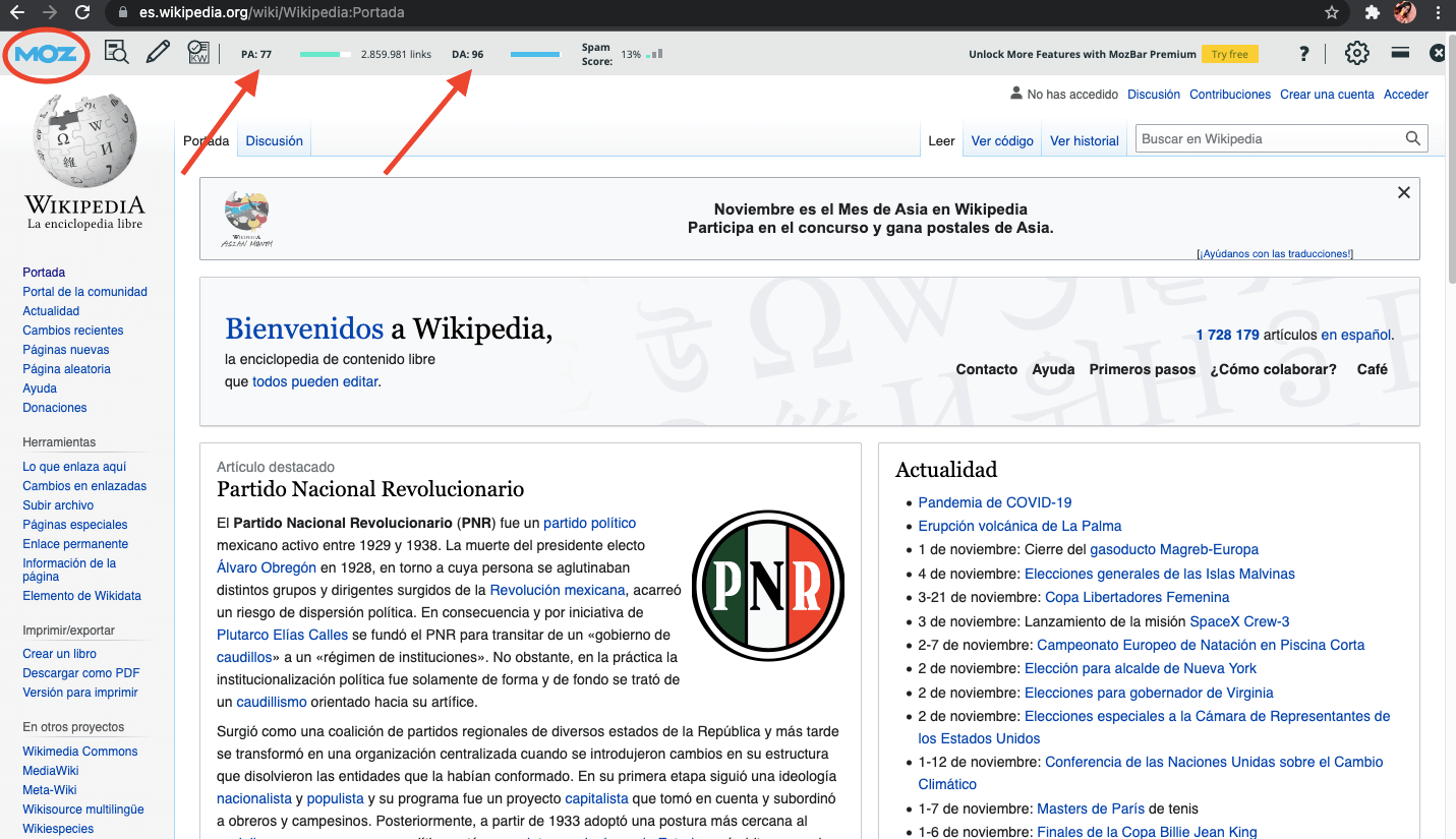 Moz Bar Wikipedia