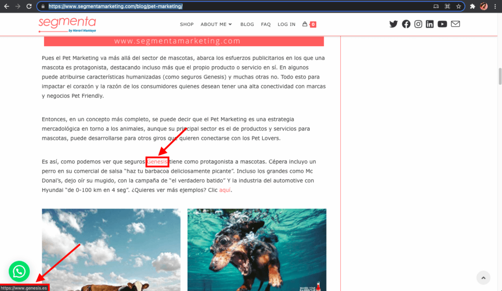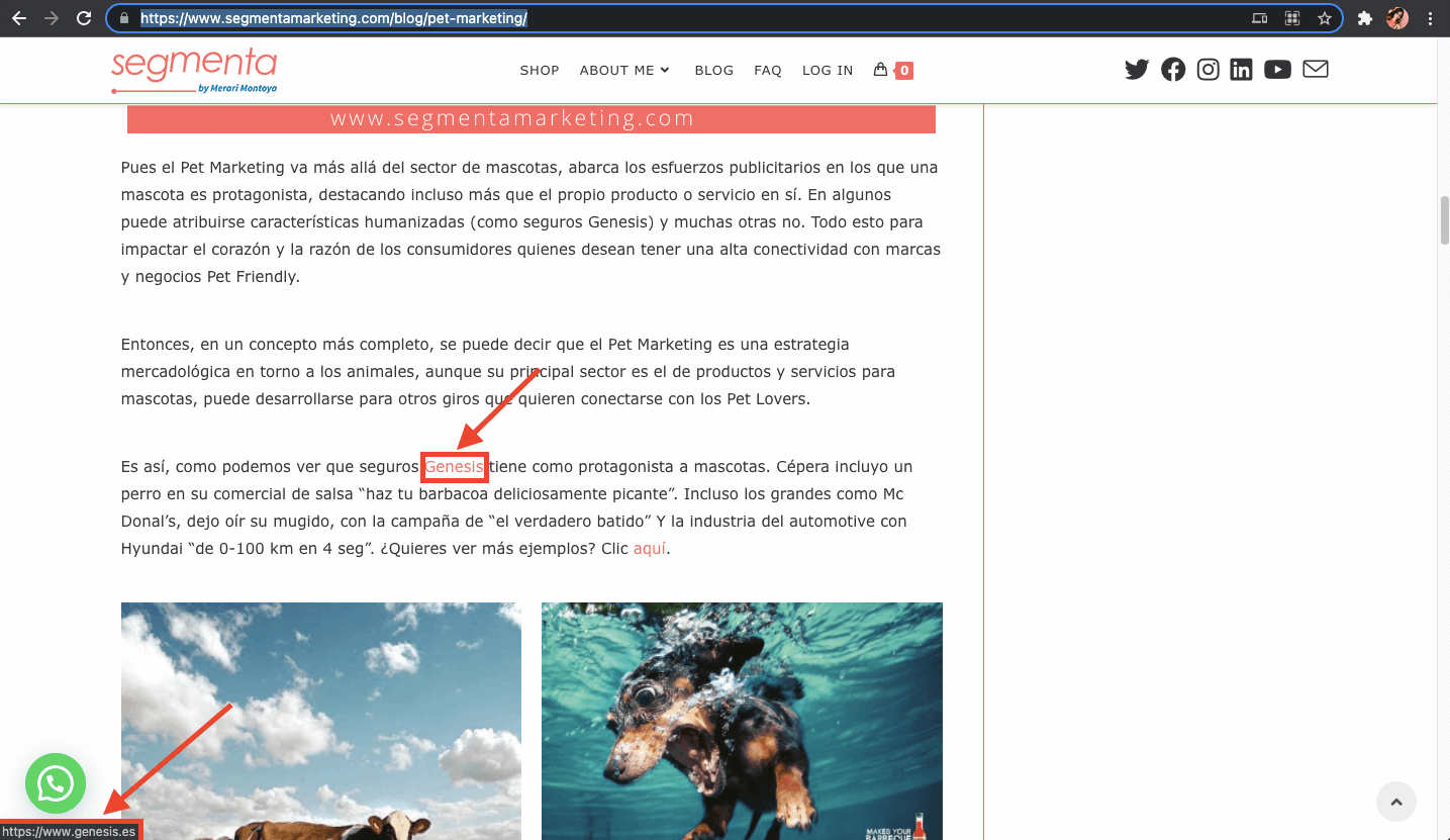 • Backlinks provenientes de blogs (se obtienen cuando creas un blog en otra web para publicar un link en una de las entradas). Dependiendo de la autoridad de la plataforma de Blog, estos links pueden transferir una buena autoridad. En Segmenta recomendamos siempre elegir plataformas de blog con una puntuación de autoridad superior a 40.